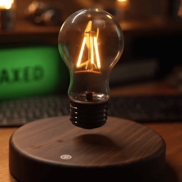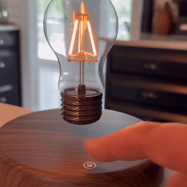 Watch in awe as the bulb floats in mid-air, spinning gently above the base – made possible by advanced magnetic levitation technology.